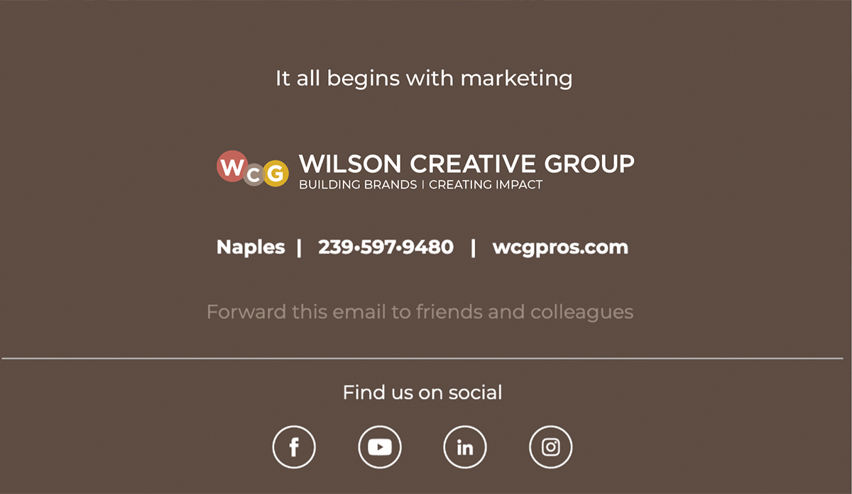 As a creative professional, Peggy Wilson has made a significant impact on Southwest Florida. In her career, spanning over 25 years, she has produced an astonishing number of the region’s highest profile, most recognized brands in dominant industries such as real estate and land development, hospitality, retail sales, technology, banking services, health care, sports and recreation, non-profits and travel/tourism. Her own intrinsic talent, keen market insight and innate ability to attract and retain skilled creative professionals have fueled the growth of Wilson Creative Group since she launched the agency in 2007.