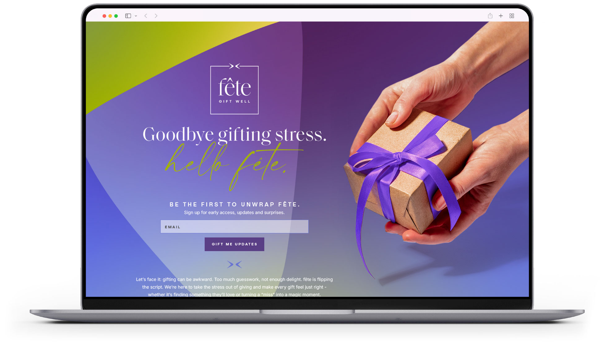 WCG partnered with fête to bring a technology-first, AI-powered gifting platform to market—one designed to reimagine gifting as a considered, elevated experience rather than a transactional one. From initial concept to launch, WCG helped define a cohesive brand identity that positions fête as a curated, luxury solution rooted in thoughtfulness and social impact. Every touchpoint was crafted to feel intentional and refined, reinforcing fête’s promise of meaningful gifting through intelligent design and purposeful technology.